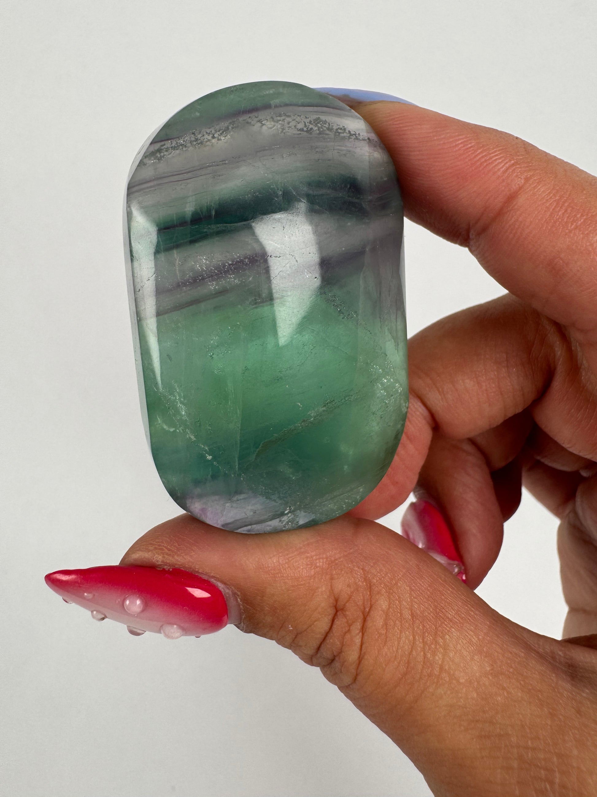 Fluorite is known as the stone of focus, protection, and balance. In this beautiful soap shape, it feels wonderfully soft in the hand and radiates calm and clarity.